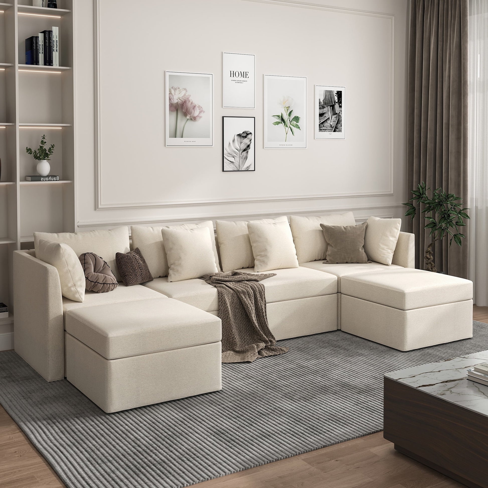 Bestco Sectional Couch/Futon Sofa Bed, Variable Modular Oversized Couch, U Shaped Couch, Convertible Sofa Set for Living Room, Furniture for Living Room, Beige