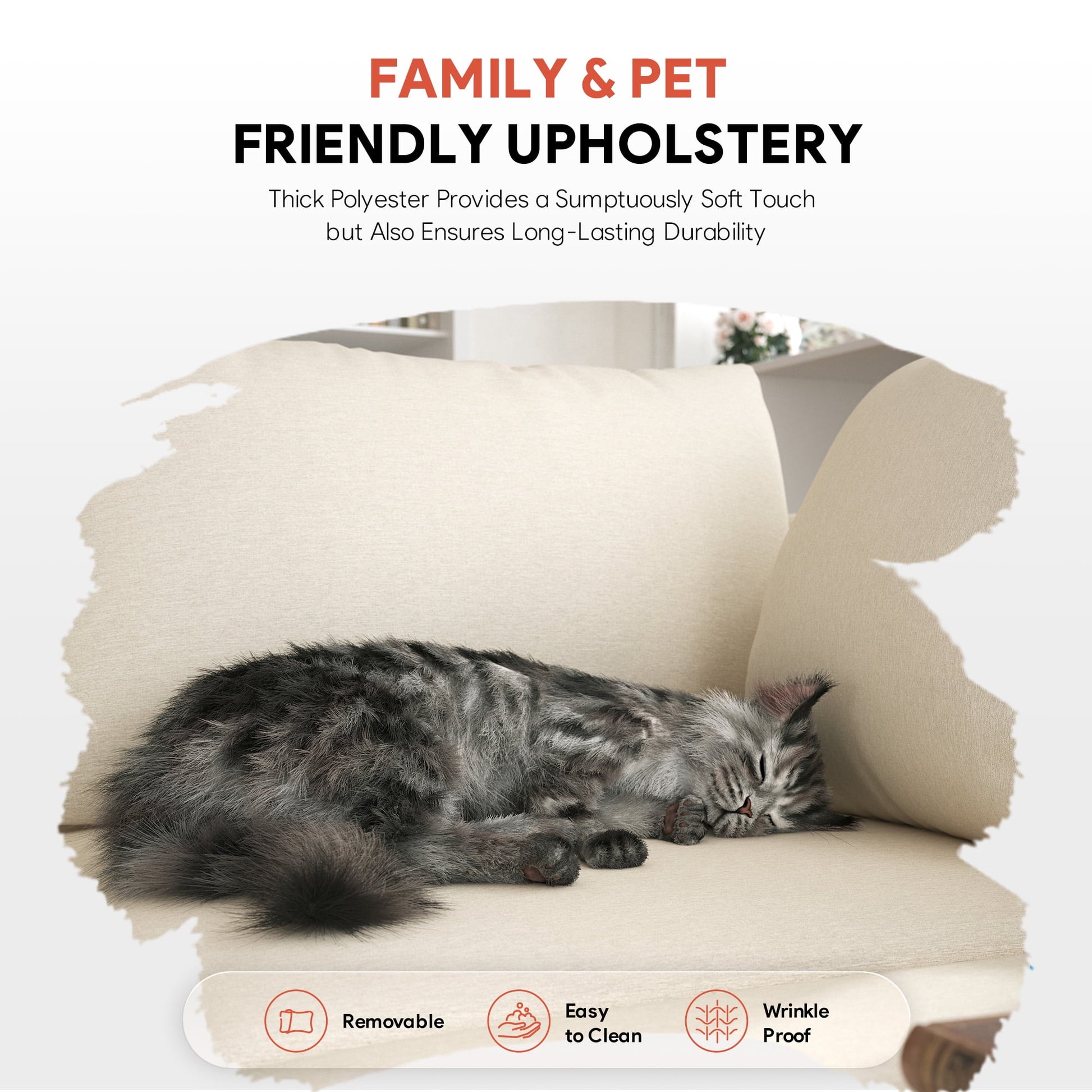 : Upholstered in sumptuous, pet-friendly polyester fabric, our sectional sofa comes with a sturdy wood frame designed to endure for decades. Plus, maintaining the pristine appearance of our sofa set is a breeze thanks to its removable covers.