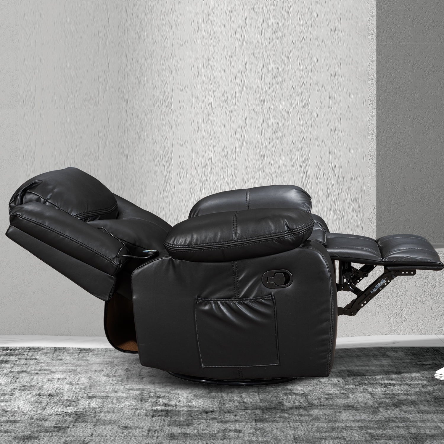 Faux Leather Recliner Chair Rocking Swivel Reclining Chair Wide Home Theater Seat for Living Room Black
