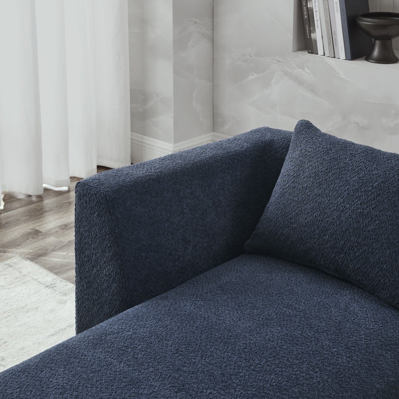 - Sturdy solid wood frame, loop yarn fabric, filled with high-density sponge and pocket spring, making this sectional sofa beautiful and comfort, it can be perfectly matched with your apartment, house or conference room.