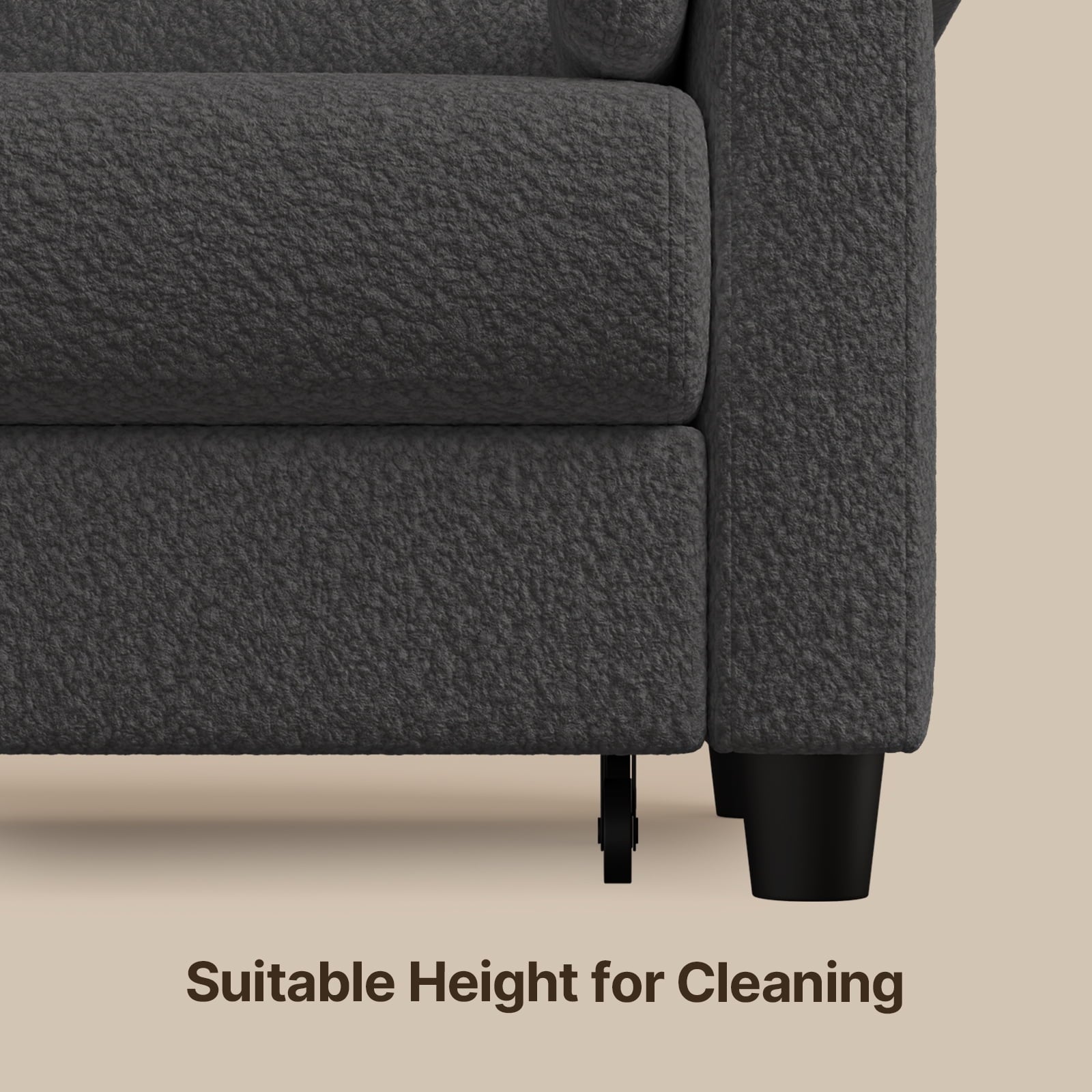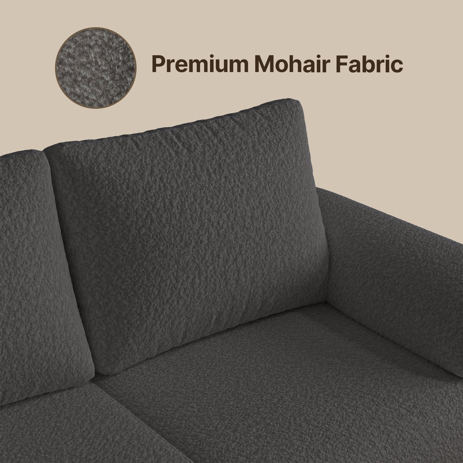 ??? Gray breathable mohair fabric with a soft, velvety texture that invites you to snuggle up and relax. ?? Three-seater design with a sturdy and supportive frame that can accommodate three people comfortably. ??? Three storage drawers located beneath the seats, providing ample storage space for your favorite books, magazines, and decorative items. ?? Drawers are equipped with soft-close mechanisms, ensuring a quiet and smooth operation. ?? The sofa is designed with a sleek and modern aesthetic, featuring clean lines, minimalist design, and a low profile.