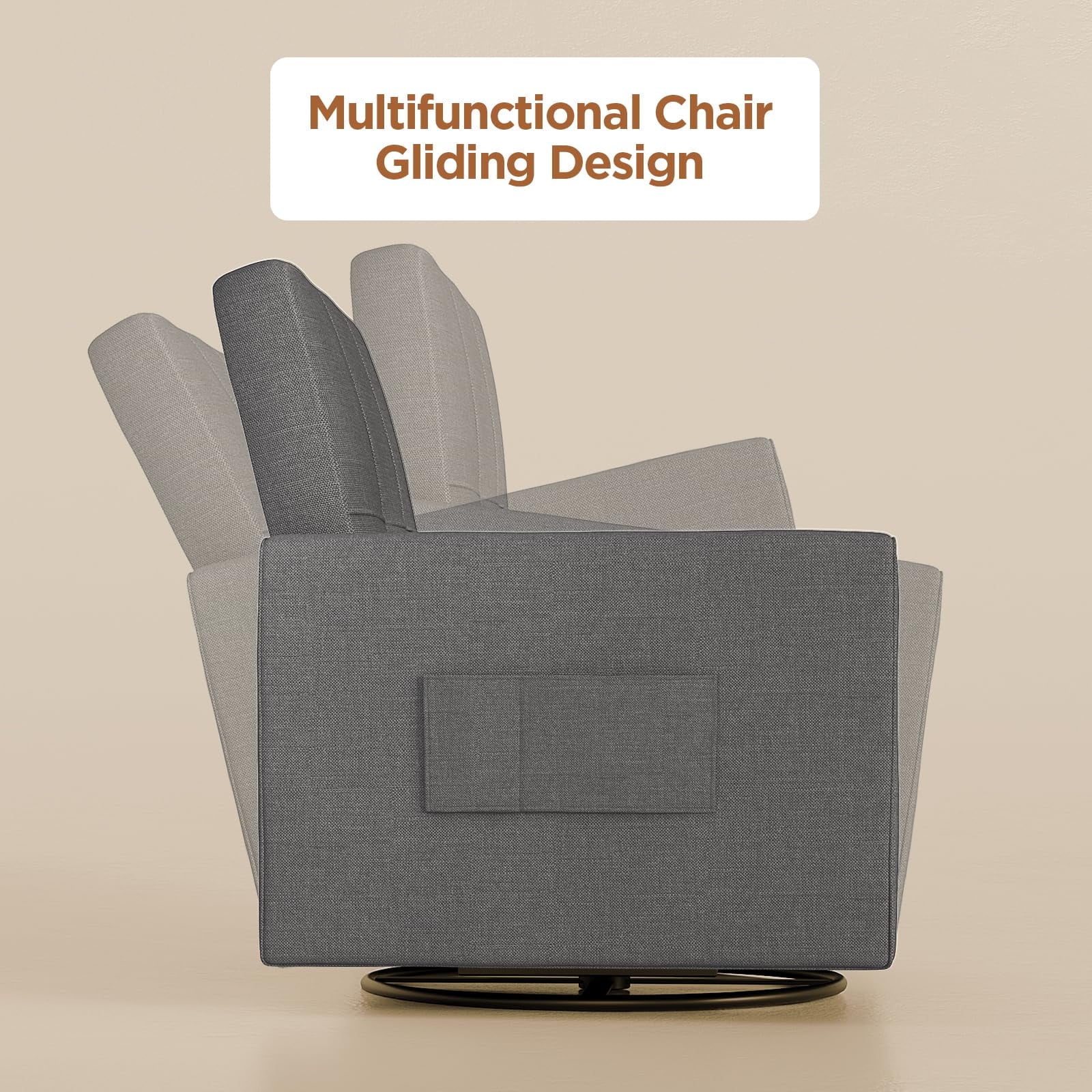 Immerse yourself in the enchantment of the 360-degree gliding recliner chair nursery!?? This exceptional chair features a complete 360¨F swivel function. The seamless gliding combined with the swivel feature guarantees a superior relaxation experience for your entire body, allowing you to unwind and destress like never before.The luxurious glide living room chair is expertly crafted with high-quality linen fabric that is not only breathable and soft on the skin, but also designed to provide maximum comfort and durability. The innovative design of the backrest and seat guarantees long-lasting resilience and shape retention, making it the perfect choice for extended relaxation and use.??