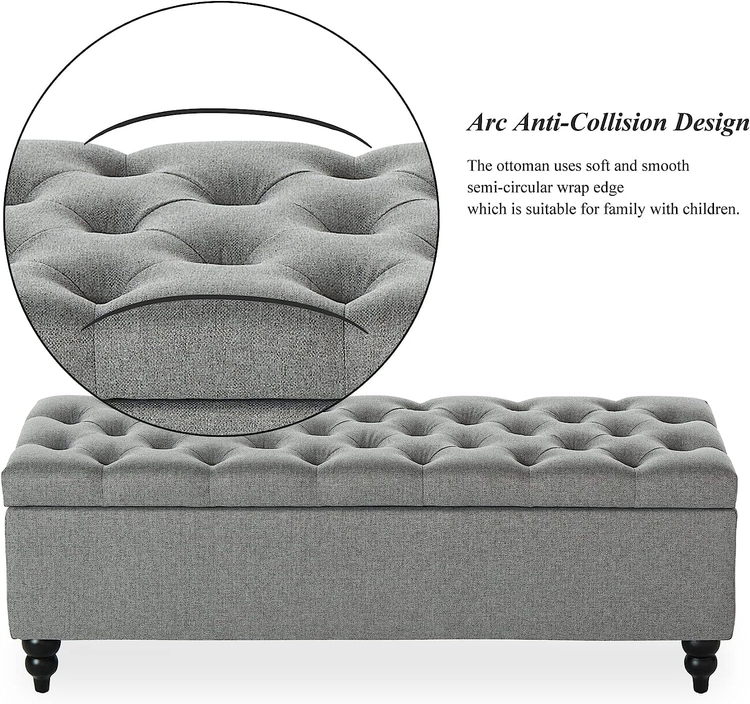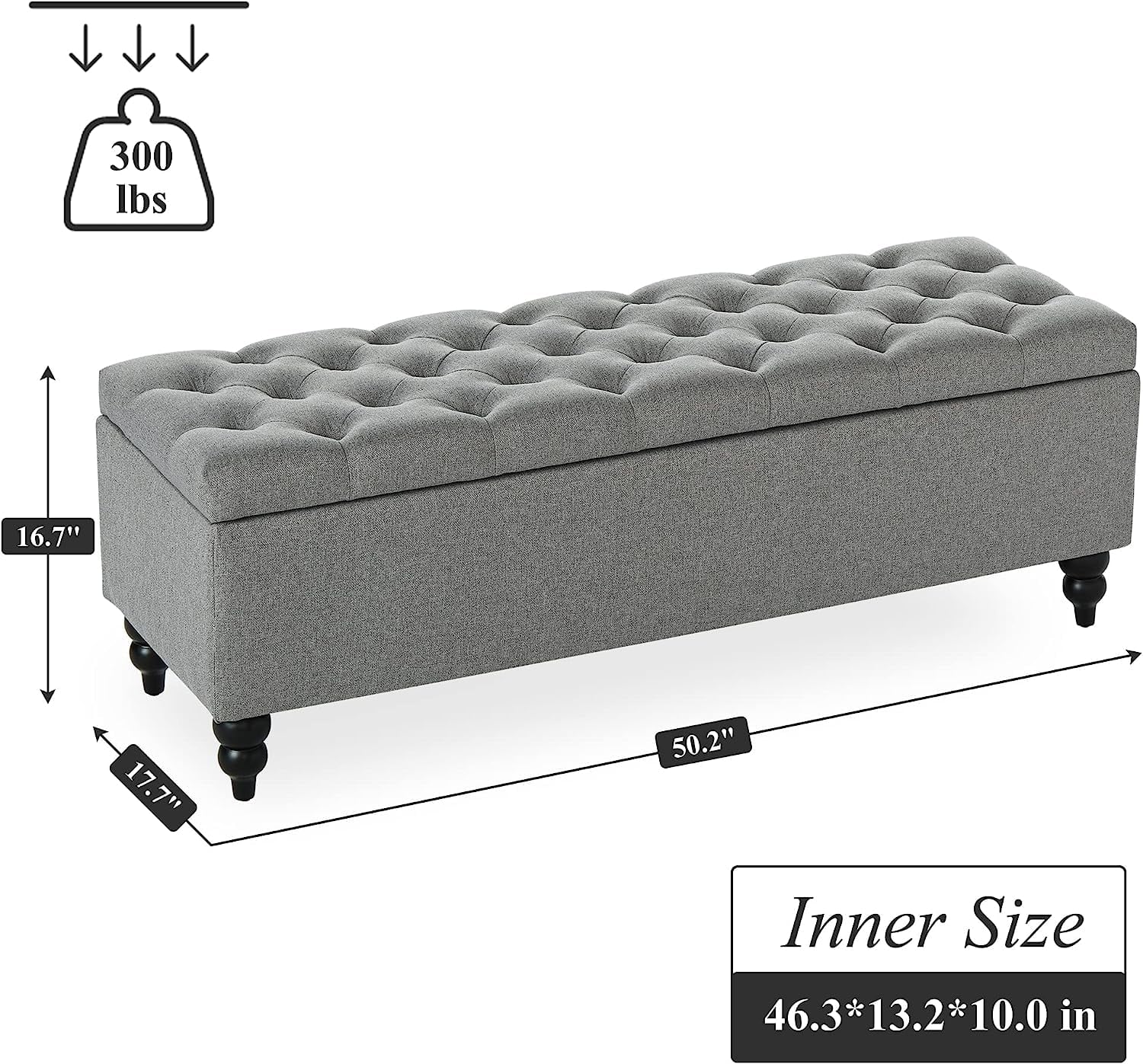 50.2 Inches Grey Upholstered Storage Ottoman Bench with Large Capacity, Perfect for Entryway, Bedroom, Living Room