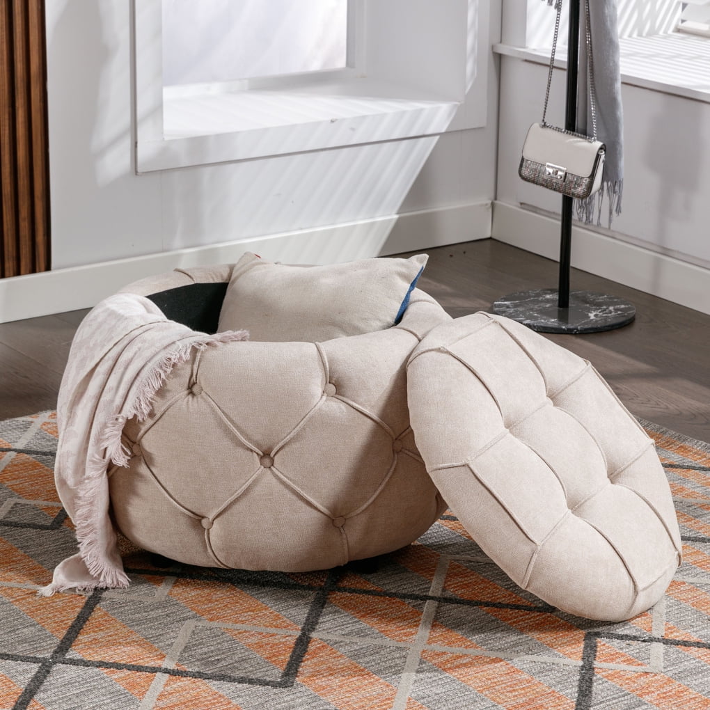 Button-Tufted Large Round Storage Ottoman Cube with Lid, Suitable for Living Room, Bedroom (Gray)